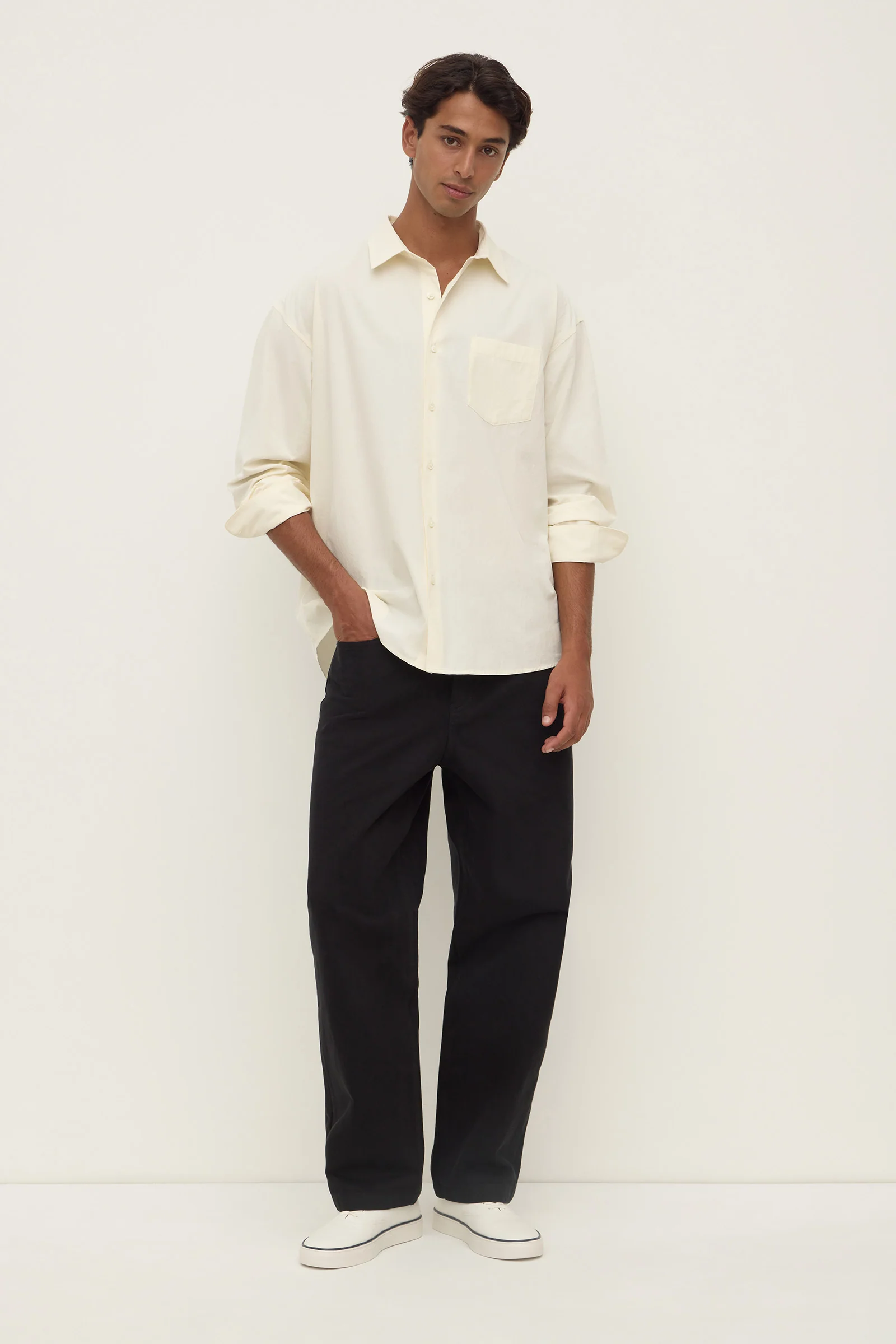 The Finn Long Sleeve Shirt in cream is a 100% cotton shirt with a classic collar and button closure.
