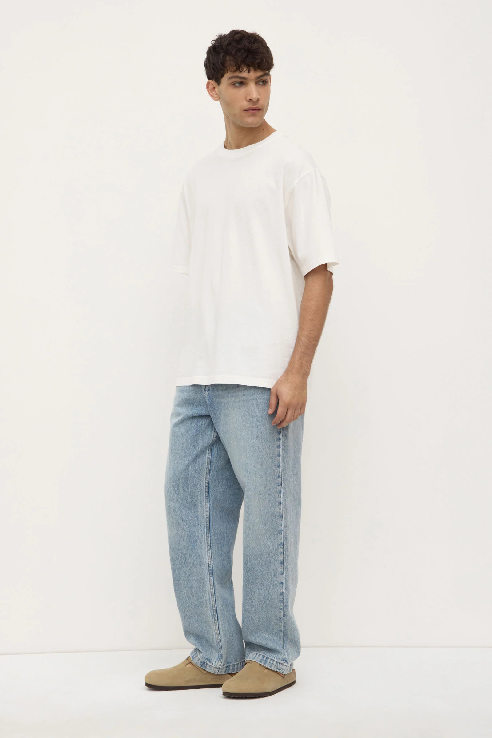The Knox Organic Oversized Tee in antique white is an oversized mens fit, made from 100% organic cotton, that has a dry hand feel.